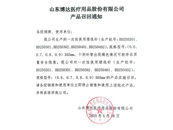 山東博達(dá)醫(yī)療用品股份有限公司是生產(chǎn)可吸收性外科縫線專(zhuān)業(yè)廠家,主要產(chǎn)品有可吸收縫合線 、內(nèi)窺鏡圈套線、可吸收外科縫線、快吸收美容線、醫(yī)用羊腸線 膠原蛋白線以先進(jìn)的生物技術(shù)提取了健康哺乳動(dòng)物內(nèi)臟的膠原蛋白為基材,采用先進(jìn)的工藝加工而成,線體的主要成分為高純度膠原蛋白,并獲得了國(guó)家發(fā)明專(zhuān)利,頒布了YZB/國(guó)6301-2013《可吸收性外科縫線》產(chǎn)品標(biāo)準(zhǔn),并通過(guò)了ISO9001:2015和ISO13485:2016質(zhì)量管理體系認(rèn)證。